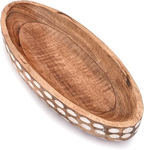 Indus Lifespace Bol décoratif en bois de manguier pour centre de table, salle à manger, salon, maison, cuisine (35,56 cm x 15,24 cm x 5,84 cm)