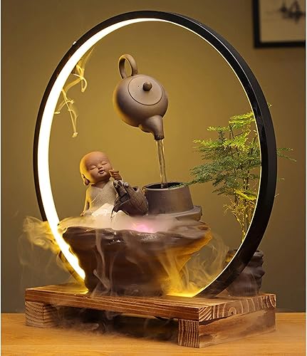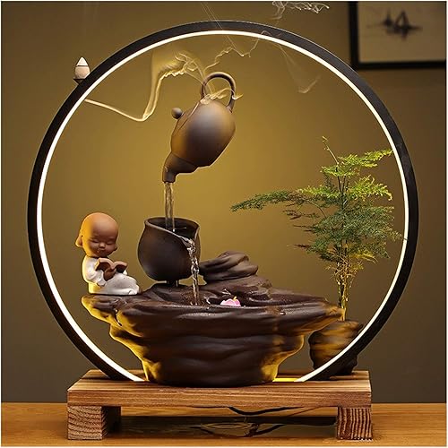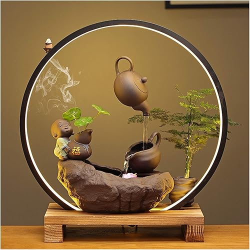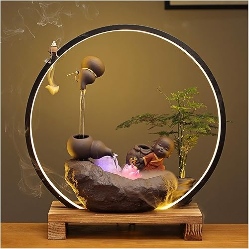 Fontaine Interieur/Fontaine Pot de suspension créatif, objet d'eau, cercle de la lampe, brûleur d'encens au backflow, salon chanceux de Feng Shui, décoration de bureau Fontaine a Eau Decorative ( Colo