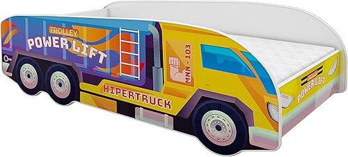 ACMA Lit pour enfant - Sommier à lattes - Camion - Pour chambre à coucher - 140 x 70 cm - 160 x 80 cm (160 x 80 cm avec matelas, 05)