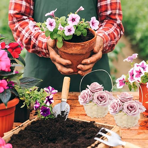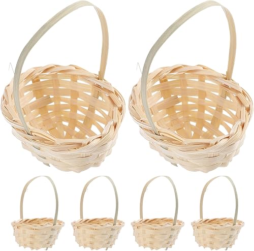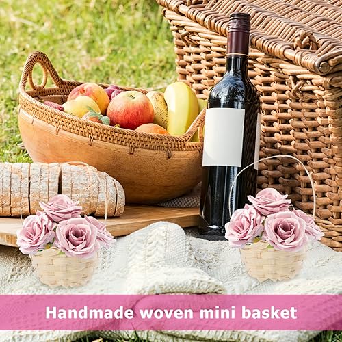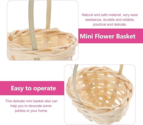 Hemoton Lot de 20 petits paniers en osier avec poignée en bois rustique fait à la main pour fleurs, bonbons, chocolat, biscuits pour mariage, fête de Pâques 10,2 x 7,6 cm
