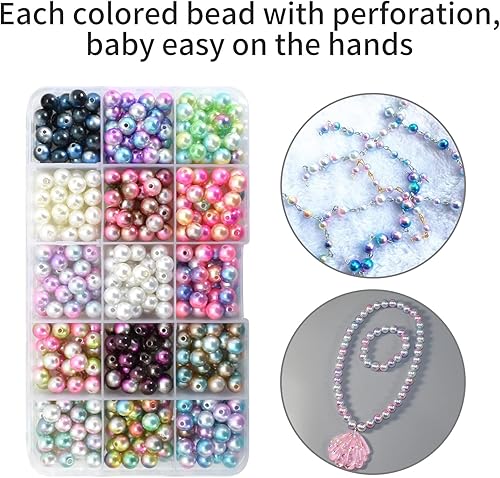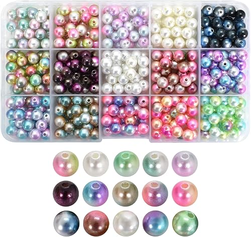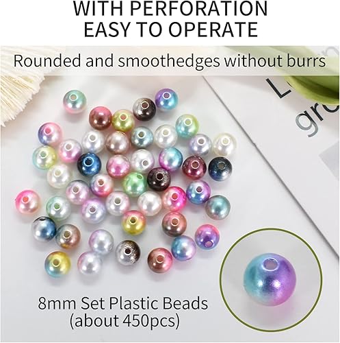 450 Pièces 8mm Perles Colorées Rondes,Perles pour Création Bijoux,Perles Décoratives Noël,Perle Loisir Creatif en Plastique,Perles et Assortiments pour DIY Artisanat Colliers Bracelets(Trou: 2mm)