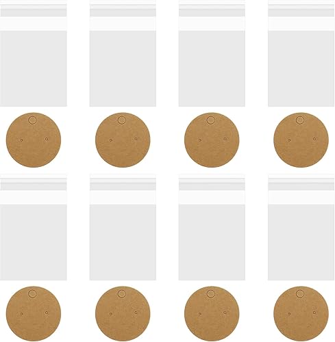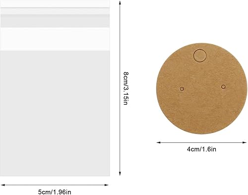 Create idea Lot de 200 cartes de présentation pour boucles d'oreilles avec 200 sacs autocollants en papier kraft vierge pour boucles d'oreilles à faire soi-même