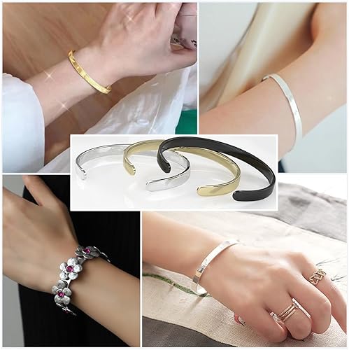 Beebeecraft 6 pièce 304 bracelets en Acier Inoxydable Vierges en Métal Doré Réglables Base Simple Estampage Gravure Fines Bandes de Manchette Vierges pour la Fabrication de Bijoux Fournitures