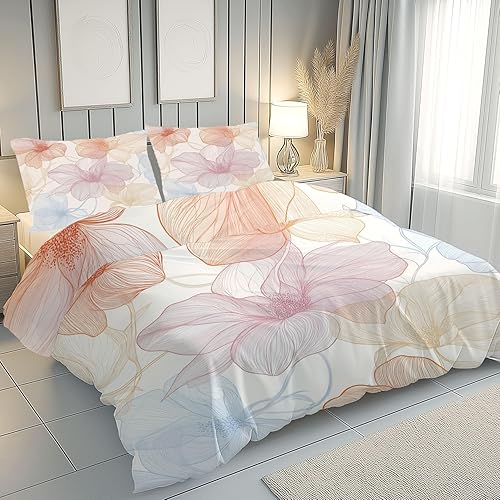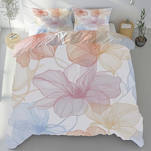 Kntnshac Motif Floral Orchidée Housse de Couette 90 x 190 cm, Fleurs Dessinées Main Duvet Cover with Zip 2 Pillowcases 65 x 65 cm, Blanc Microfibre Bedding Set