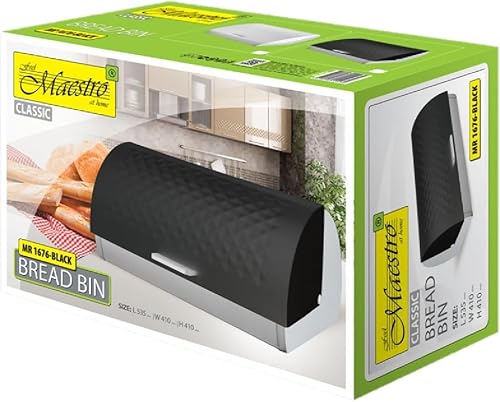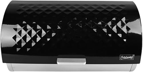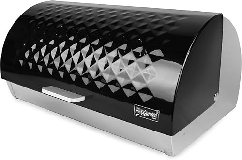 Maestro MR‑1676 Boîte à pain avec couvercle coulissant en acier inoxydable | Grande boîte à pain | Récipient de conservation robuste pour une organisation élégante de la cuisine (noir)