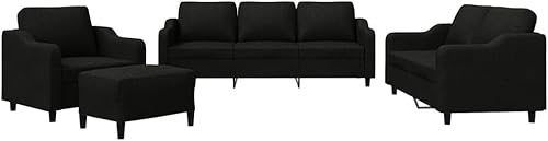 vidaXL Ensemble de Canapés avec Coussins 4 pcs, Canapés avec Accoudoirs et Dossier, Ensemble de Meubles avec Repose-Pied Salon, Moderne, Noir Tissu