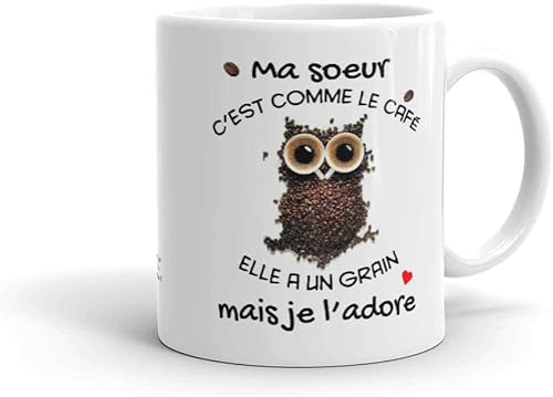 L'Esprit Des Anges Tasse Mug Cadeau Soeur Anniversaire - Ma Soeur c'est Comme Le Café Elle a Un Grain Mais Je l'Adore - Idée Originale