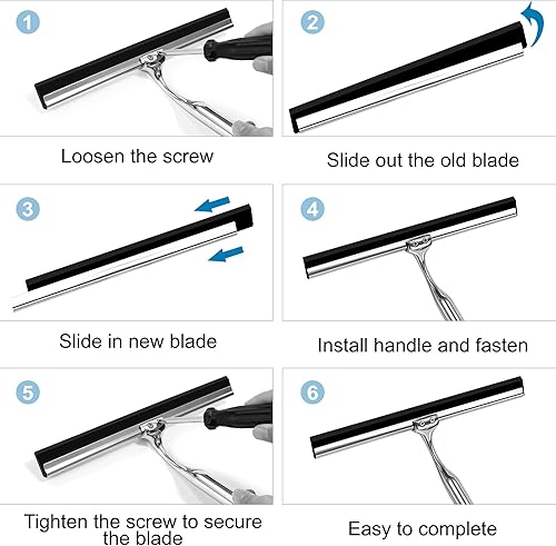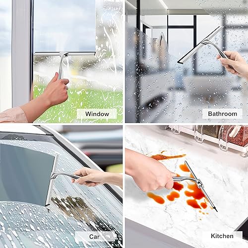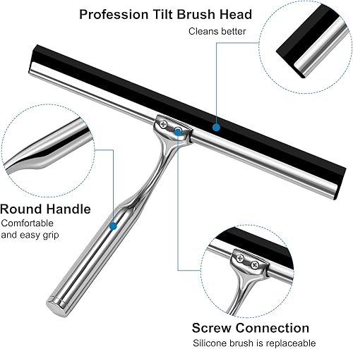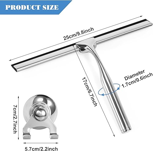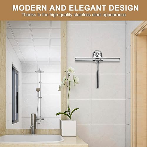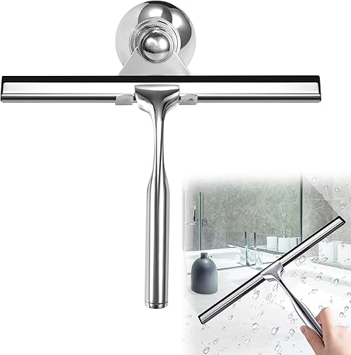 Raclettes de Douche en Acier Inoxydable Raclette en Silicone 25cm avec Support Ventouse pour Douche Fenêtre Verre Porte de Douche Argenté
