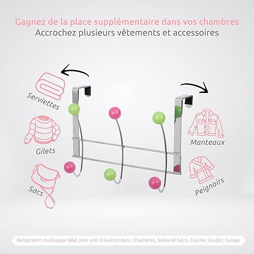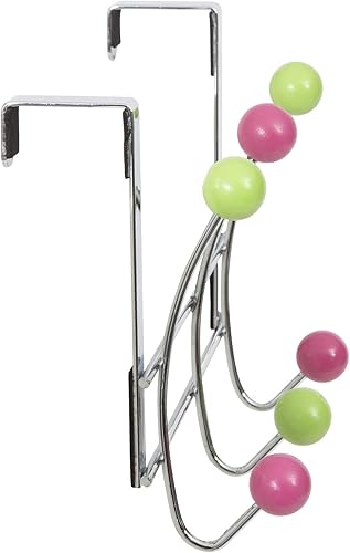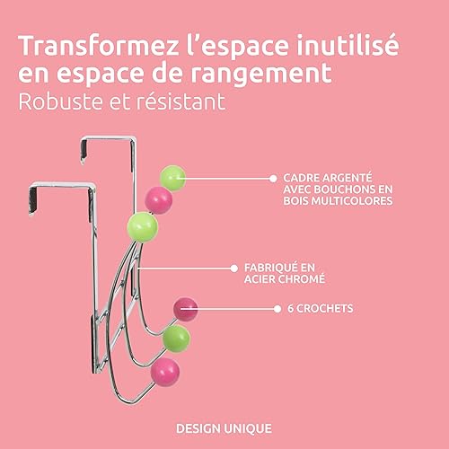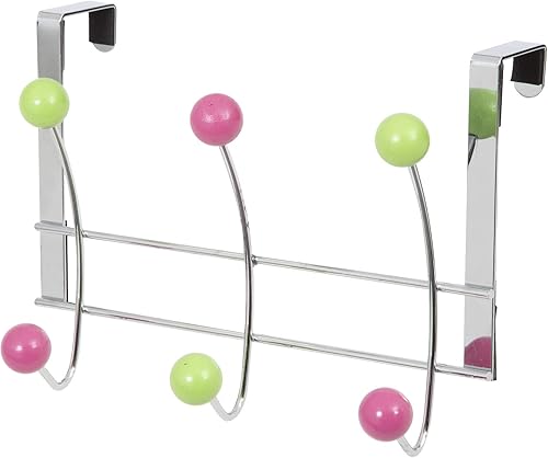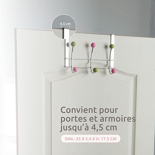 Compactor, Patère de Porte 6 Crochets pour Manteaux, Bois Multicouleurs, Acier Chromé, Dimensions: 25 x 5.4 x H. 17.5 cm, RAN6010
