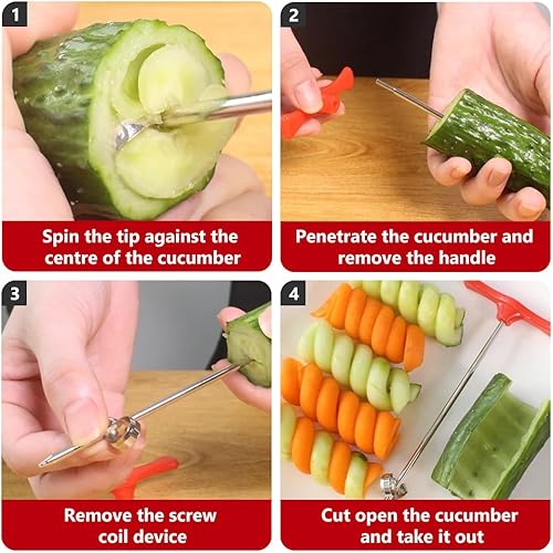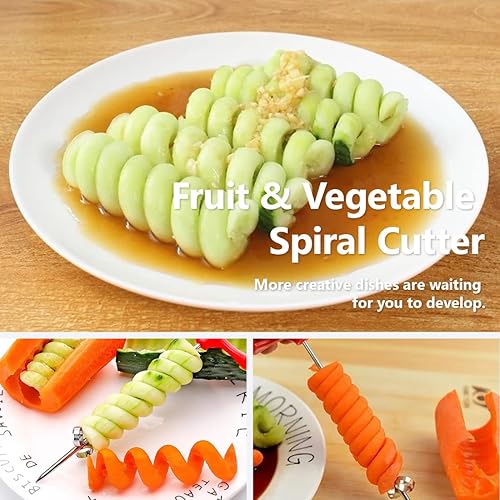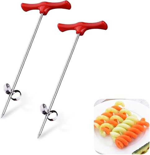 OHREN 2 pièces Coupeur Spirale pour Légumes et Fruits, Machine de Découpe en Acier Inoxydable, Créatif en Spirale, Tour de Pomme de Terre, Coupe-Spirale pour Pommes, Barbecue Camping Fête Cuisine