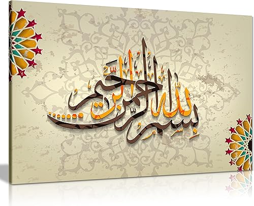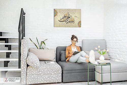 Impression sur toile - Décoration murale - « Bismillah » - Calligraphie arabe, marron, A0 91x61cm (36x24in)