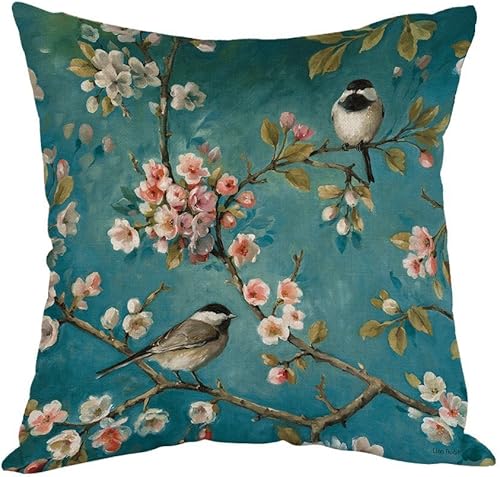 yisumei Housse de coussin Housse de coussin Home Decor Coussin décoratif canapé jeté de housses de coussin Pillo wcases deux oiseaux avec fleurs, Polyester, Zwillinge Drucken, 40 x 40 cm