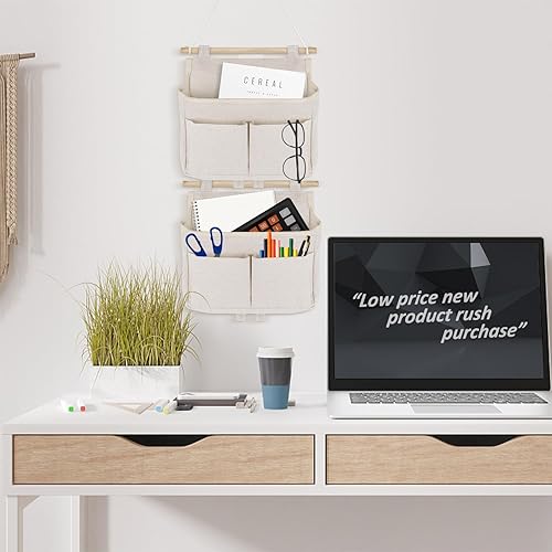 Prmape Lot de 2 Sacs de Rangement à Suspendre, Grande capacité, 3 Compartiments avec Crochets adhésifs, pour la Maison, l'école, Le Bureau, Le Magasin, Le Camping-Car, la Tente