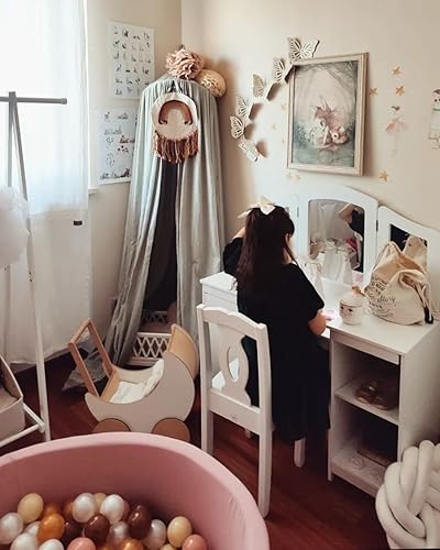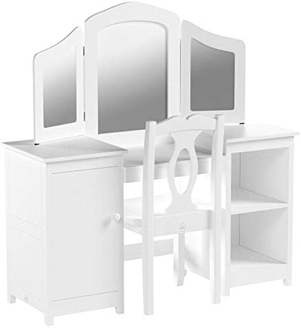 KidKraft Coiffeuse avec Miroir et Chaise Deluxe pour Enfants, Bureau avec Rangement, Table Enfant avec Chaise en Bois, Meubles de Chambre d'enfant, 13018