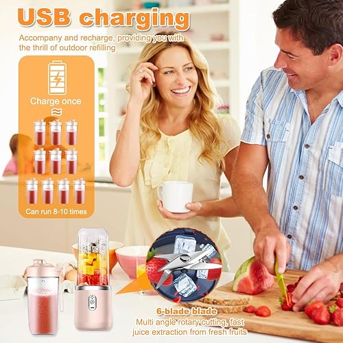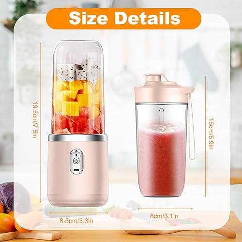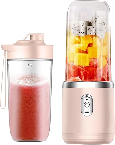 Blender Portable, 400ml Mini Blender, Blender électrique Avec 6 Lames, USB Mixeur Portable, Mini Mixeur Et 2 Gobelet Pour Les Fruits, Les Smoothies, Les Milkshakes,Jus De Fruits (Rose)