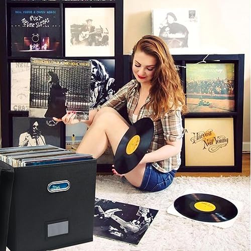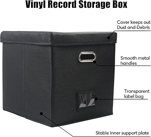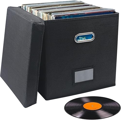 Easyhomie Boîte de rangement pour disques vinyles de 17,8 et 12', grande capacité pour jusqu'à 90 disques, pliable et portable (noir)