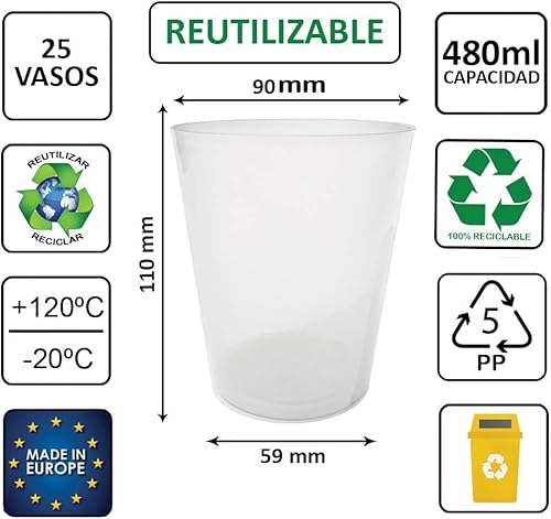 Grupo Servimark Lot de 25 verres à cidre réutilisables 500 ml – Polypropylène (PP) – Translucide – Gobelet durable sans BPA, idéal pour cidre, sangria, mojitos ou autres boissons