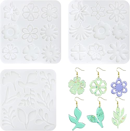 LXJLXD Moules en résine pour boucles d'oreilles en forme de fleur avec trous - Moules en silicone pour boucles d'oreilles, pendentifs, fabrication de bijoux en résine époxy