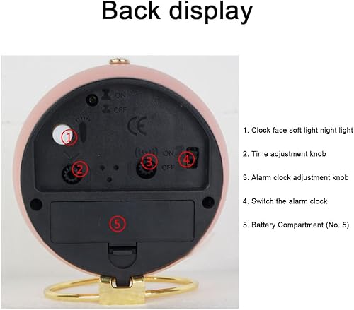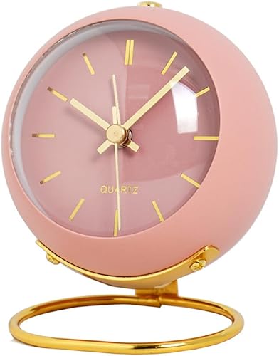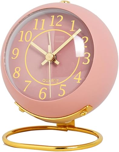Reveil Analogique avec Lumière, Petit Réveil Rétro Silencieux, Réveil de Chevet Alarme Fort Étudiant, Réveil en Métal pour Chambre à Coucher, Cuisine, Bureau, Alimenté par Pile (Rose)