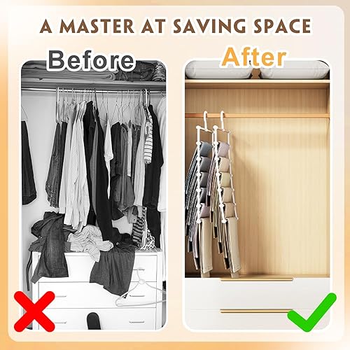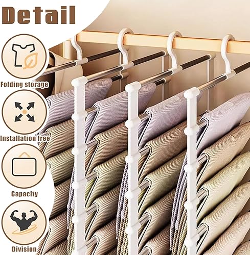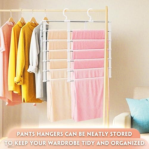 Cintre Pantalons Gain de Place, 2 Pièces Cintres Pantalons, 6 en 1 Cintre Pantalon de Armoire Gain De Place, Cintres Pliables, Cintre Pantalon à 6 Couches, pour accrocher Pantalons, Jupes, écharpes