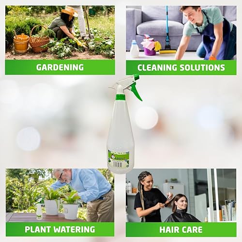 1ABOVE Flacon pulvérisateur d'eau en plastique de 1 litre | Flacons pulvérisateurs pour solutions de nettoyage et jardinage | Pulvérisateur d'arrosage des plantes | Mode réglable | Bouteille en