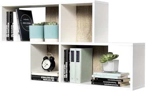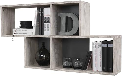 FMD Moebel 270-001 Nora Etagère Murale avec 4 Compartiments Bois Chêne/Blanc 100 x 19,5 x 53 cm