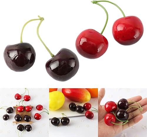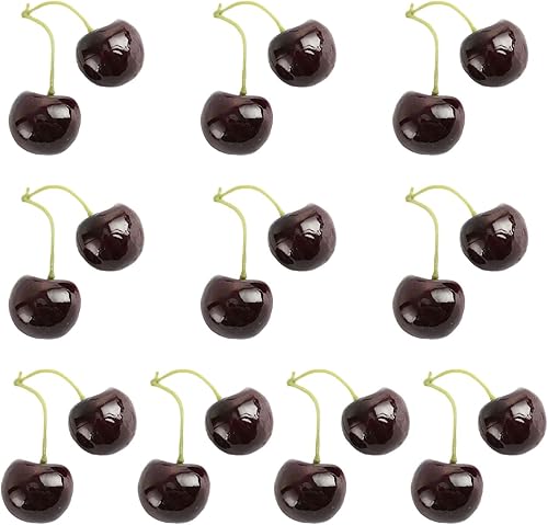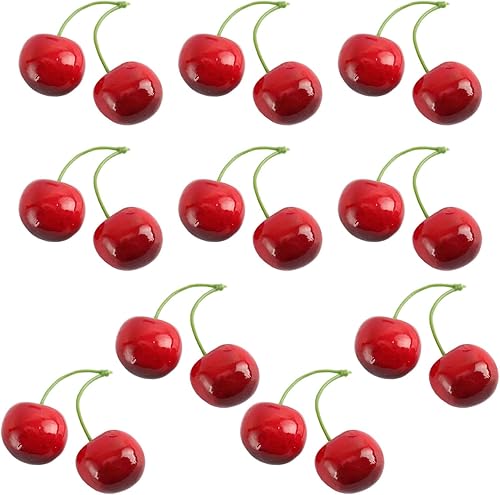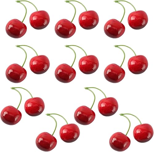 Lot de 10 paires de cerises artificielles pour décoration de maison, 10 paires de cerises artificielles pour la cuisine