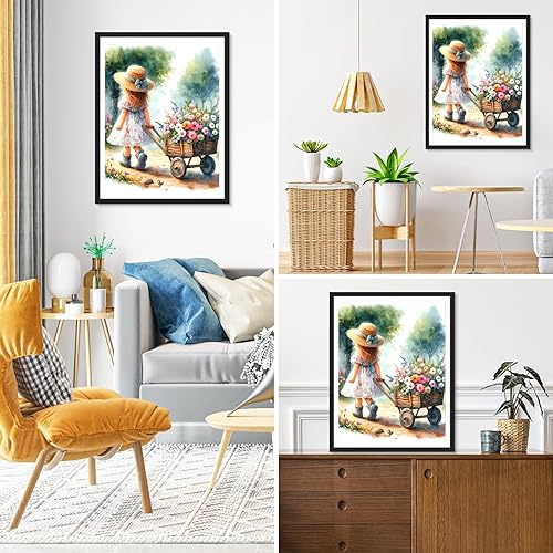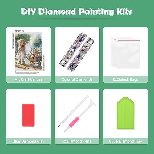 RICUVED Fille en Fleur Diamond Painting Kit -Fleur Peinture Diamant 5D DIY pour Adultes, Kit Complet de Broderie Diamant Diamant Strass Point de Croix Cristal Painting pour Murale Décoration 30x40 cm