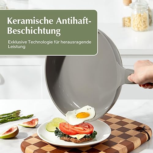 Redchef Poêle à frire antiadhésive 28 cm, avec revêtement en céramique, poêle à omelette, à induction, sans PTFE, sans PFOA, résistante aux rayures, passe au lave-vaisselle