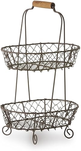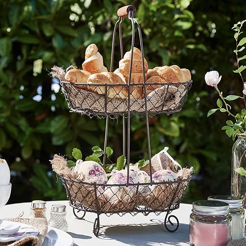 Loberon Présentoir à étages Rohesia - Fil de Fer, Bois - H/L/P env. 37/21 / 16 cm - Gris, Gris