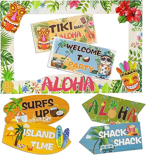 Syoulin Aloha Cadre Photo et Panneau de Bienvenue pour fête hawaïenne, Luau, Beach Party – Décoration pour Bar Tiki, Jardin et extérieur – Atmosphère Parfaite pour Votre décoration de fête