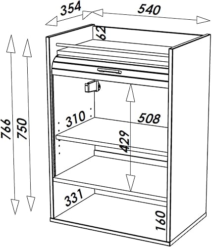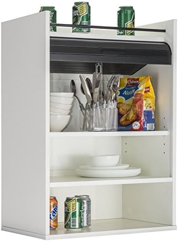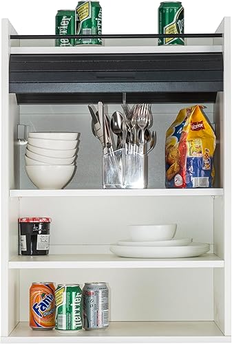 SIMMOB Meuble de Cuisine Blanc Rideau Noir ou Blanc 4 Niches L 54 H 76.6 P 35.4 cm