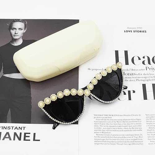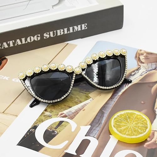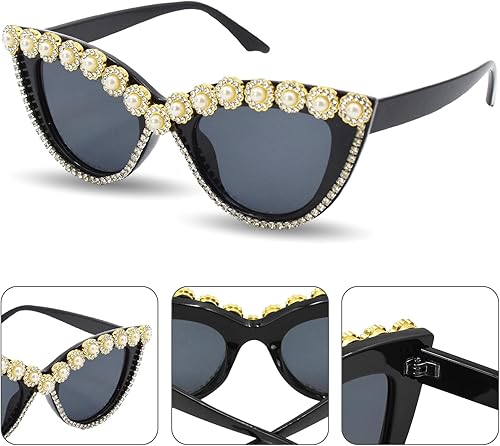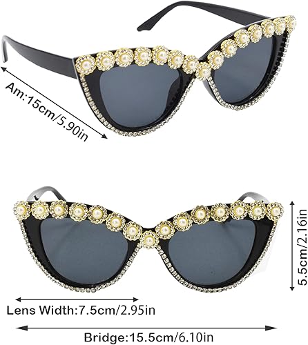 Zequech 1 paire de lunettes de soleil de fête en forme d'oeil de chat avec diamants de 52 mm de largeur. Accessoire idéal pour les fêtes à la plage d'été et les photos fantastiques. Convient à tous