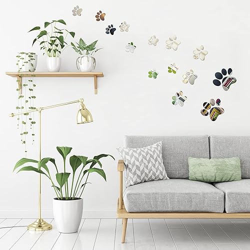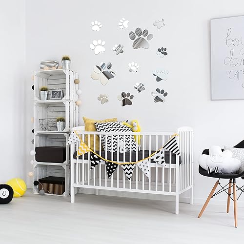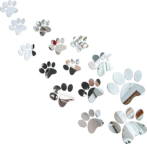 14 Pièces Stickers Miroir Patte Kit de Stickers Muraux Empreintes de Chien Autocollants de Patte Acrylique Bricolage Décors de Pattes Murales Amovibles Décoration de 3 Tailles pour Enfants