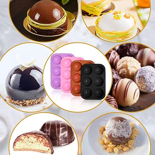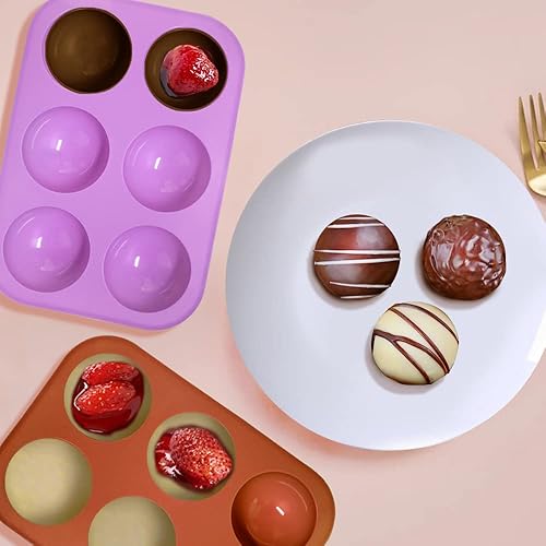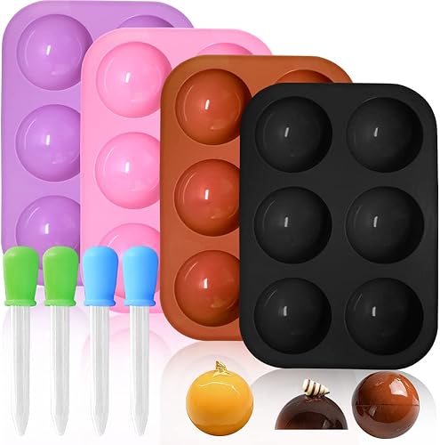 FineGood Lot de 4 moules en silicone en forme de sphère, moules à chocolat demi-sphère pour gâteau en forme de dôme avec compte-gouttes