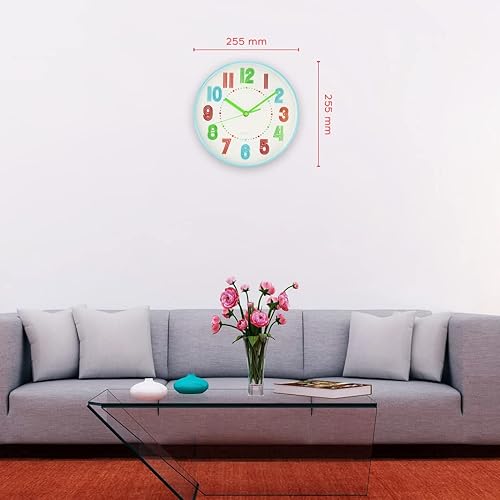 PM Company Horloge Murale Colorful Wall Clock - pour Enfants - sans Bruit de tic-tac - Horloge Murale silencieuse - Chiffres Multicolores - 30 cm - Quartz Silencieux - pour Chambre garçon et Fille