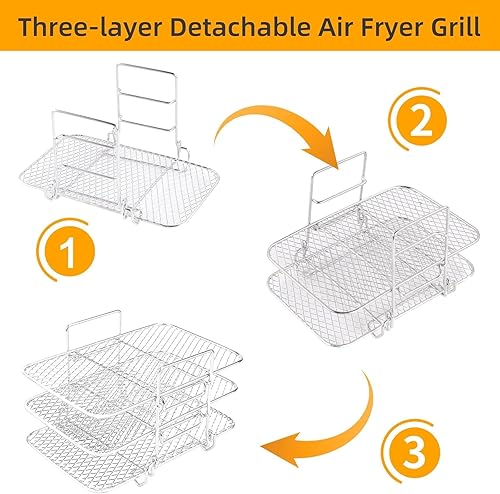 3 niveaux Accessoires de grille pour friteuse à air, sur acier inoxydable avec accessoires de grille Ninja Foodi, grille polyvalente compatible pour friteuse à air COSORI/Instant Vortex/Proscenic