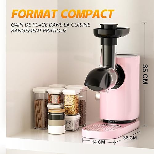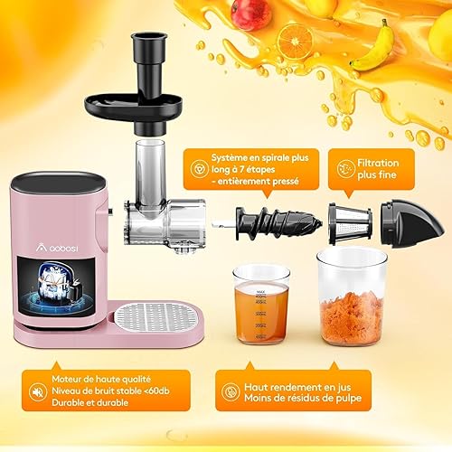 AAOBOSI Slow Juicer avec moteur silencieux/fonction marche arrière/brosse facile à nettoyer – Broyage doux sans filtration, extracteur de jus pressé à froid pour fruits et légumes, rose