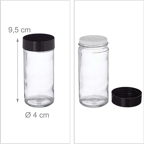 Relaxdays 10028824 Étagère Bambou, 8 Pots Verre, Présentoir à épices, Organiseur 2 étages, Rangement, Nature