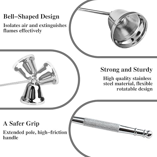 Éteignoir à Bougie, Acier Inoxydable Bougie Extincteur pour Éteindre Les Llammes des Bougies, Accessoires de Bougies Convient pour Cuisine Maison(Argenté)