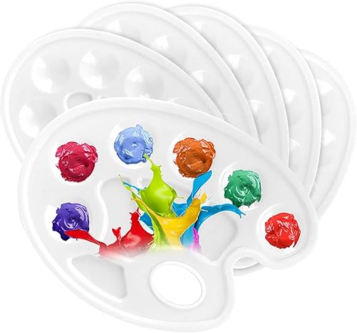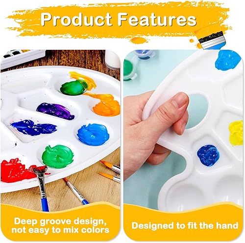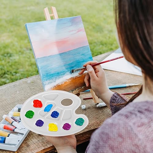 PBUSPU 6 Pièces Palettes de Peinture, Ovale, Blanc, avec Trou de Préhension et 10 Zones de Mélange, pour l'art de Bricolage Artisanat Peinture, Acrylique, Aquarelle, Gouache, Huile