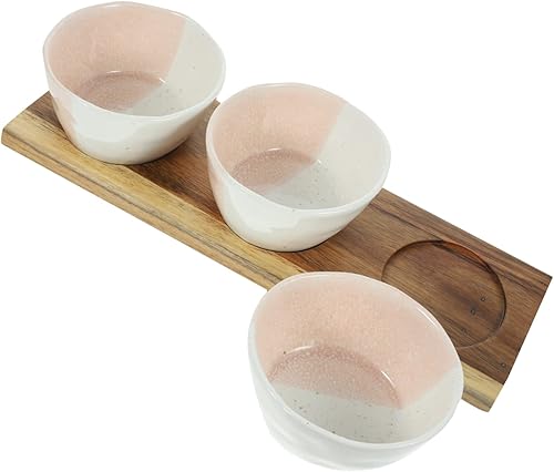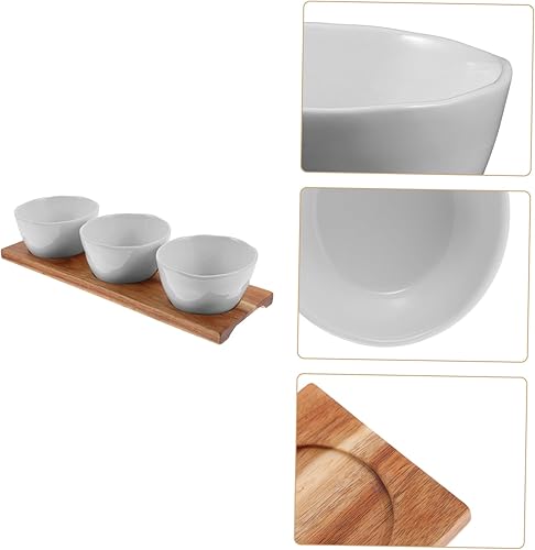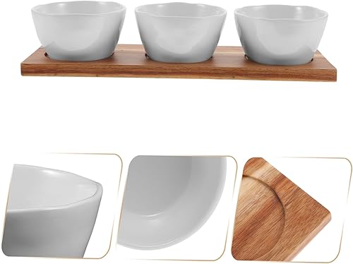 OUNONA 1ensemble Plateaux À Snacks Céramique Avec Support Bois Assiette À Fruits Et Bonbons Plat De Service Pratique Pour Dîners Et Réunions