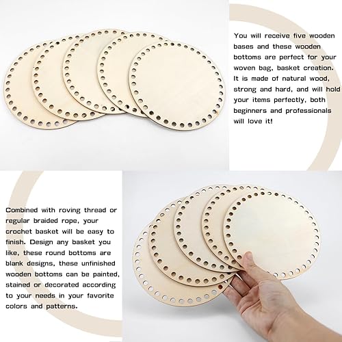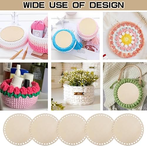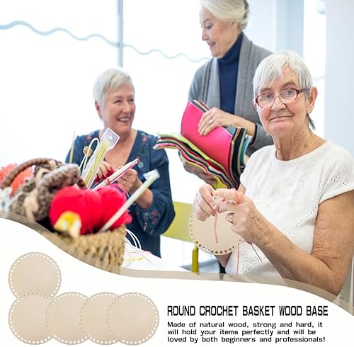 Fonyiunce 5 Pièces Fond de Sac, 10cm, Panier au Crochet Base en Bois, pour Panier de Panier en Bois Naturel Base en Bois pour Panier Au Crochet pour Bricolage Panier Tissage