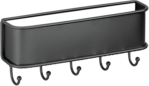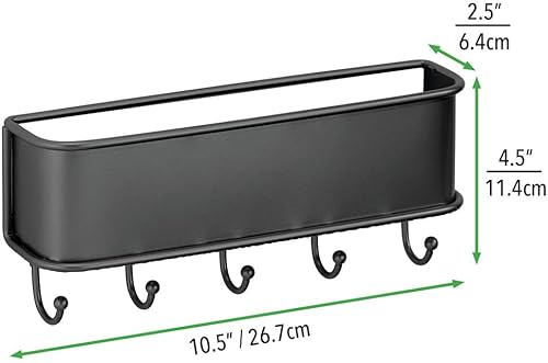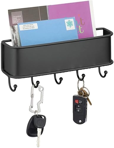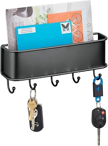 mDesign range clé mural avec plusieurs accroches clés – rangement suspendu pour courrier, clés, téléphones, laisses pour chien, etc. – porte courrier avec rangement en métal – noir