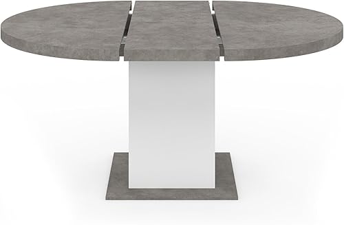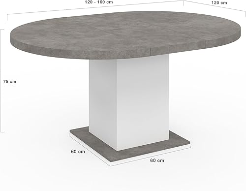 IDMarket - Table à Manger Extensible Ronde Eden 4-8 Personnes béton et Blanc 120-160 cm