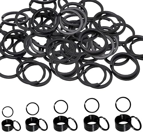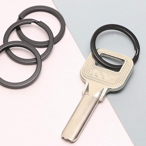 RDNKVB 50 Pièces Clés Rondes pour Clés de Maison Clés de Voiture Bricolage, Porte-Clés, Attachés de Clés, Anneaux de Séparation (30mm, 28mm, 25mm, 20mm, 15mm, Noir)