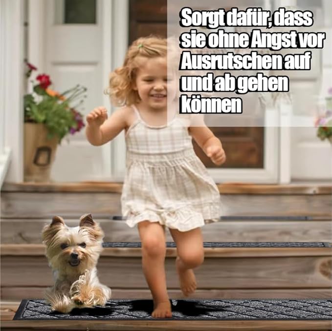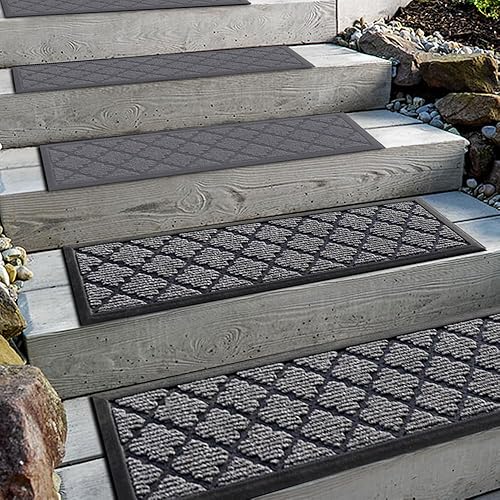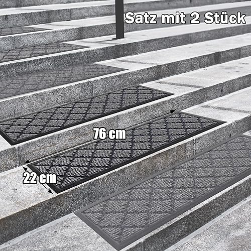Aucuda Lot de 2 tapis d'escalier d'extérieur en caoutchouc, 76 x 22 cm, résistants aux intempéries et antidérapants, isolation thermique, tapis en caoutchouc antidérapant pour l'extérieur, tapis