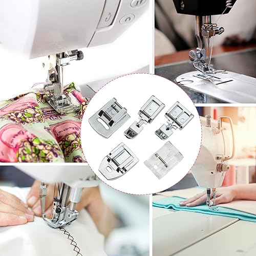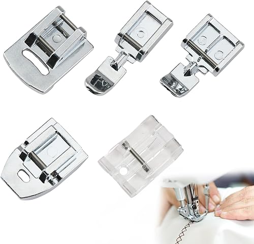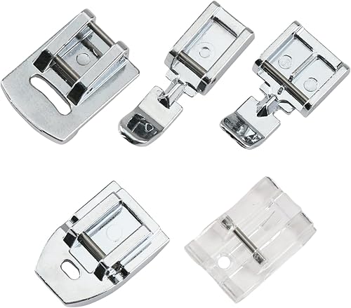 Pied de Biche Machine a Coudre, 5pcs Pied Presseur Machine Multifonctionnel Pied Fermeture Eclair Métallique et Plastique Accessoires Couture pour Machines à Coudre Brother Singer