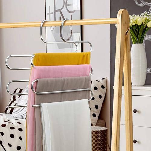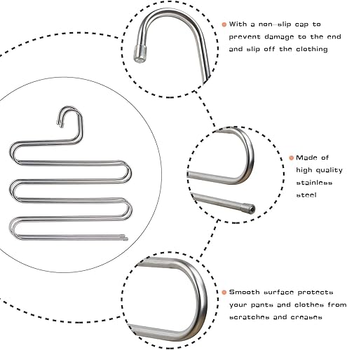 Cintres Porte-Pantalons Cintre Pantalon en Acier Inoxydable, Porte-Pantalon Type S à 5 Couches, Cintre Multi-Usage pour Pantalons, Robes, Cravate, Serviettes 2 pcs