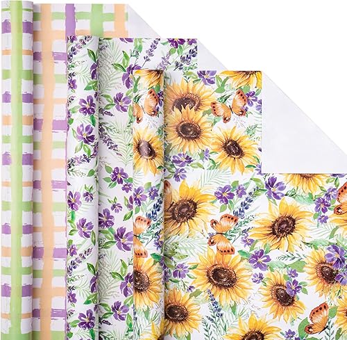 Holijolly Rouleau de papier d'emballage de Pâques - Mini rouleau - Poulet/lapin/croix de Pâques avec design métallique pour emballage cadeau, artisanat - 43.2 × 3.0 M - 3 rouleaux (42.5 sq.ft.ttl.)